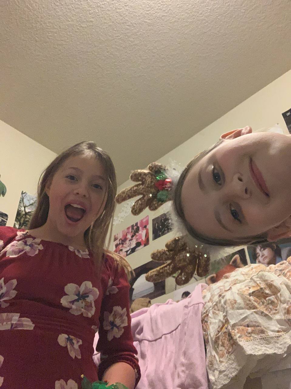 Lynley and i had a sleepover!!! i went and then we did dress up so then after that her mom {pastor Jess} came in and said like asked what we wanted and we had burgers from red robin and fries with root beer. after we did eat a kiwi . then we went and wached the princess switch after and it was super funny!