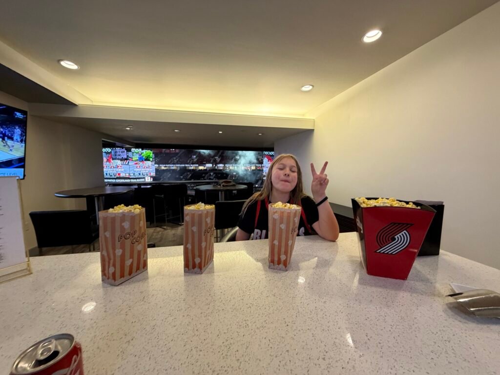soooo i went ioo a blazer game and i had a super fun time and i went and it was me mom laura,brynn,kenzie and me and mom and these are the phtots