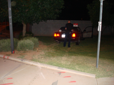 Here is how it went: About a mile down the street he crashed his car and went off the road.  He was drunk.  So much so that he got out of his car and tried to run away– but some people we outside and apprehended him until the police arrived.